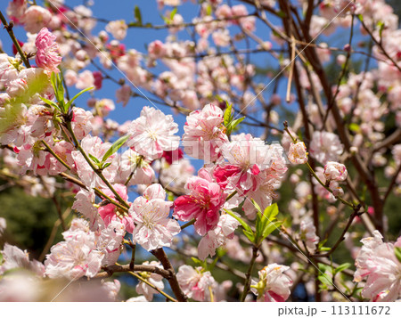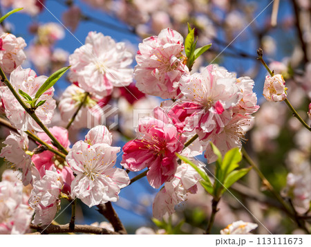 紅白咲き分け(源平咲き)のハナモモの花【源平】