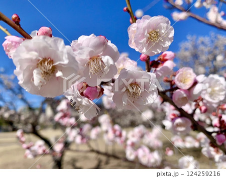 百品種の香り 水戸偕楽園に咲く薄紅色の梅の花 名木「春日野」のアップ