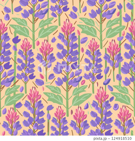 Vector floral seamless pattern with lupines on light peachy background