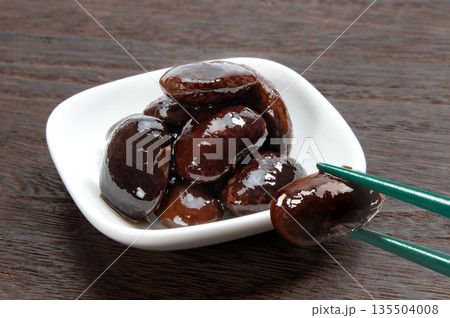 箸で摘んだ花豆の煮物