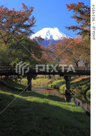 農村風景漂う秋の忍野八海と富士山