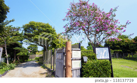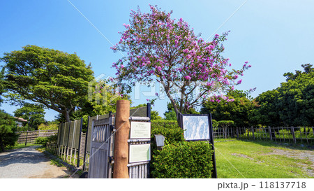 入来武家屋敷の旧増田家住宅とサルスベリ
