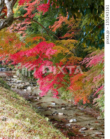 紅葉に包まれた静かな小川