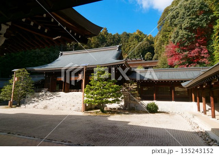 紅葉に包まれた近江神宮の社殿