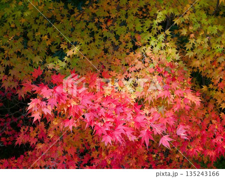 広葉樹・カクレミノ(隠蓑)の紅葉・背景素材
