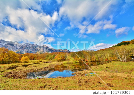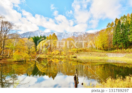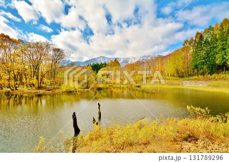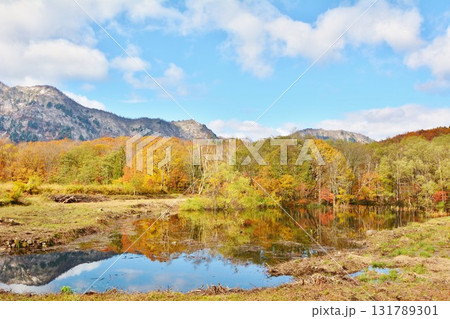 紅葉の秋山郷天池の画像素材(写真・イラスト) 1ページ目