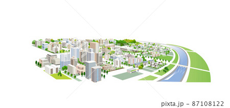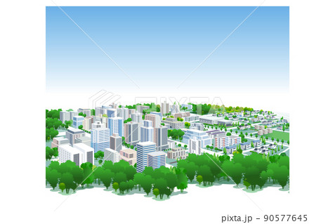 美しい高層ビル群の都市景観。美しいビル群と人々が自然と融合して明るく暮らせる街づくり。