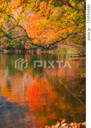 【秋素材】秋の戸隠高原鏡池【長野県】