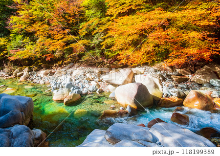 奥津渓の秋 紅葉の渓谷17 岡山県苫田郡鏡野町