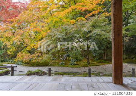 秋の京都 法金剛院庭園 礼堂から見える紅葉