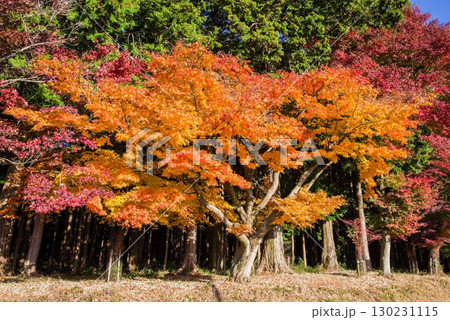 真っ赤なモミジとヒノキ林《三重県 四日市市 水沢町 もみじ谷付近》