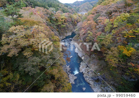 群馬県 秋の吾妻峡 八ッ場ダム下流の吾妻峡橋付近の吾妻峡の眺め 2022年11月4日