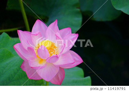 蓮の花が青空の下で咲いている(二十四節気の小暑のイメージ)
