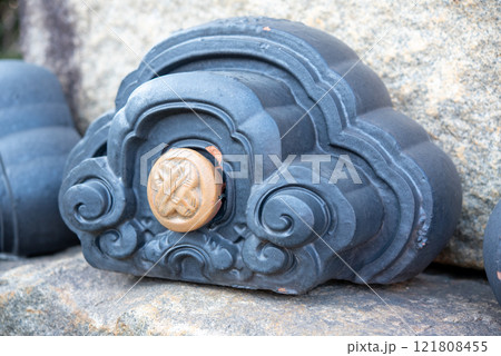 寺社の境内にある軒先の瓦のイメージ
