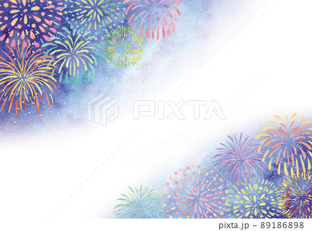 花火大会の水彩風背景素材 お祭り 夏祭り 花火 水彩 背景 フレーム