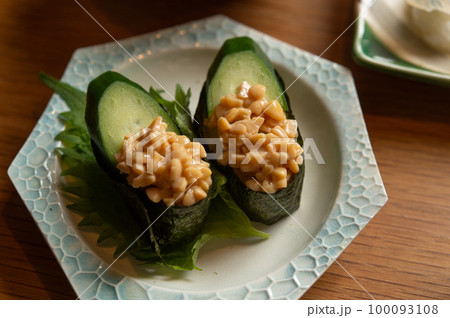 納豆の軍艦巻きと、白菜ときゅうりの野菜寿司