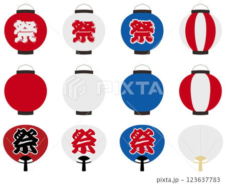 祭と書かれた提灯のイメージイラストセット