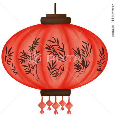 Red round paper lantern with bamboo leaf pattern
