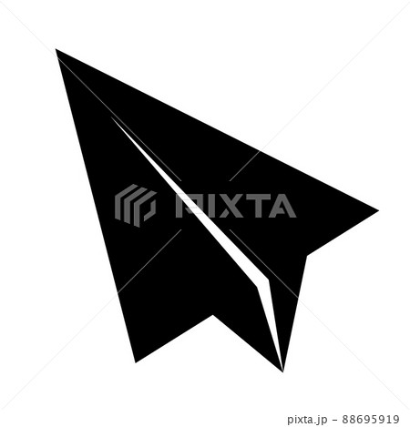 紙飛行機の白黒イラスト。メールの送信アイコン。送る、飛ばすを表す記号。
