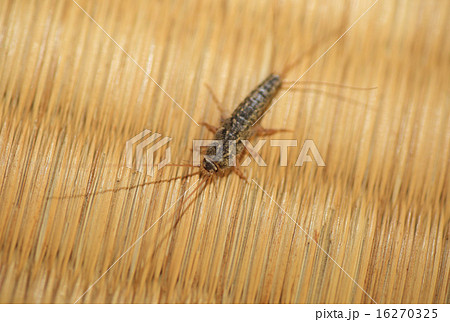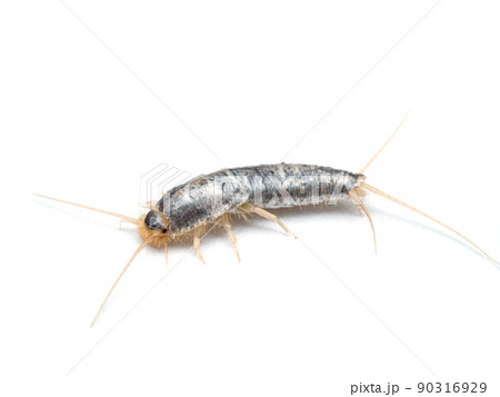 紙を食べる屋内害虫である紙魚(シミ)の白バック写真