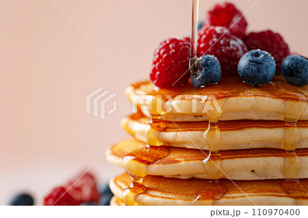 Fluffy Pancakes with Syrup and Berries - Delicious Breakfast Stack