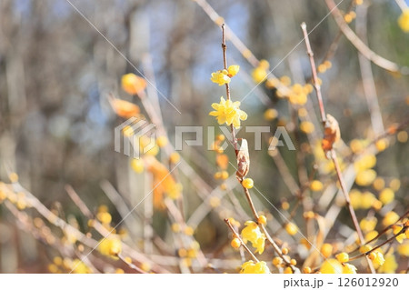 ロウバイの花 ろうばいの郷 素芯種 逆光 【群馬県】