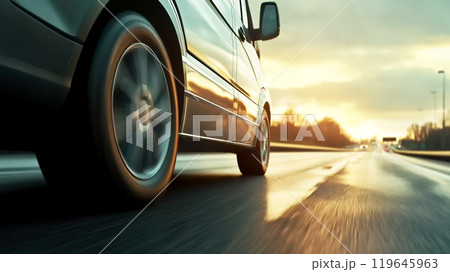 Close up car wheel with smoke on the asphalt road speed track, Car wheel drifting and smoking on track, Car wheel spinning.