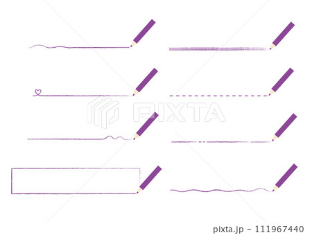 紫の色鉛筆で引いたいろんな線 セット