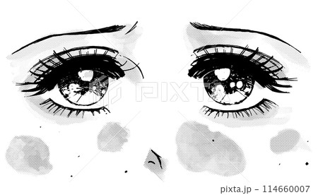 少女漫画風・顔のシミに悩む女性の顔面の白黒イラスト