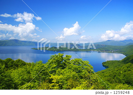 発荷峠展望台と春風景の十和田湖(秋田県)