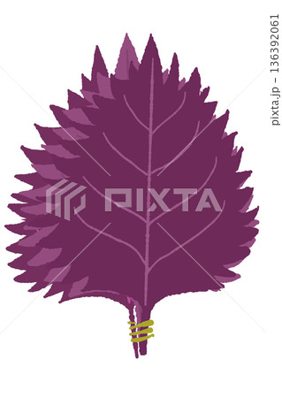 梅干し作りやシソジュースの原料として使われる鮮やかな赤紫蘇の1枚葉イラスト