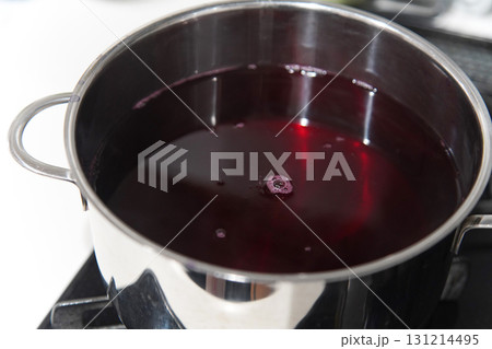 紫蘇ジュースを作る様子