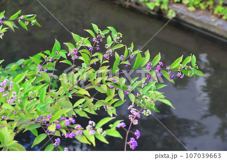 水辺に枝を伸ばす小紫(コムラサキ)の実