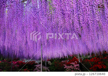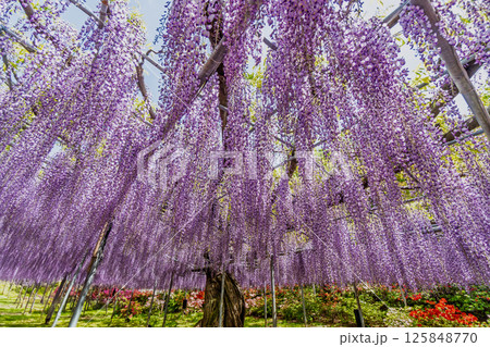 春 あしかがフラワーパーク藤棚と白ツツジ美しい