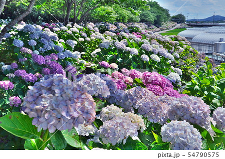 斜面に咲き誇るアジサイ 野市あじさい街道 梅雨晴れ(高知県 香南市)