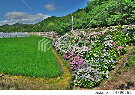 日本の梅雨の風景 のいちあじさい街道(高知県)