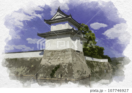 水彩画風 赤穂城 大手隅櫓 兵庫県赤穂市
