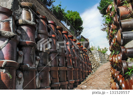 常滑市 やきもの散歩道の土管坂と焼酎瓶の壁(愛知)