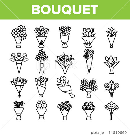 Bouquets, Bunches Of Flowers Vector Icons Set