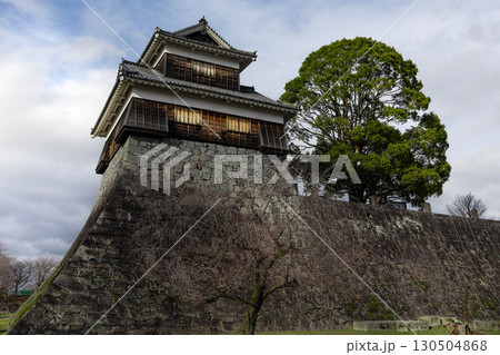 穏やかな春の日 石垣の上の熊本城を見上げる