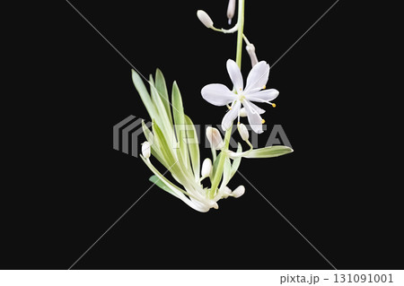 黒背景で撮影したオリヅルランの花