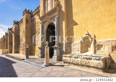 The Mosque Cathedral of Cordoba, Cathedral of Our Lady of the Assumption in Cordoba town in Spain. Ancient stone architecture with intricate details.