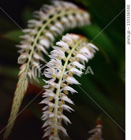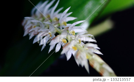細長い花茎の白い首飾り蘭