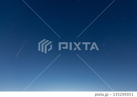 夜明けの満天の星空と新月