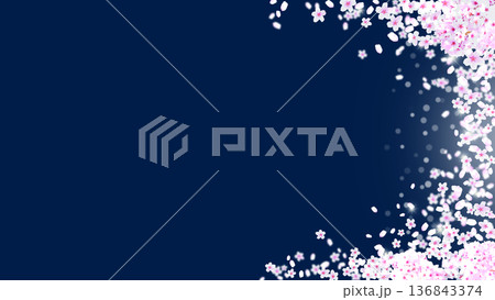 春のイメージ、桜の花と風に飛ぶ花びらの背景イラス