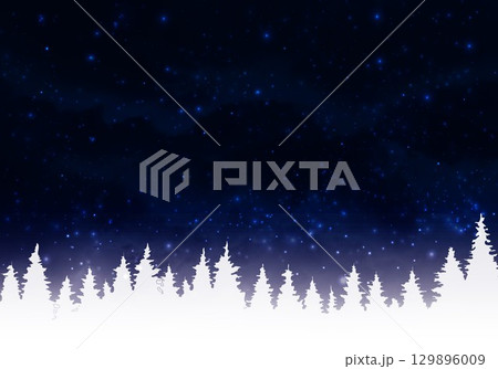 雪原と木立が広がる冬の夜空の風景|冬, 夜空, 雪, 木立, 星空, 自然, 森, 静けさ, シンプ