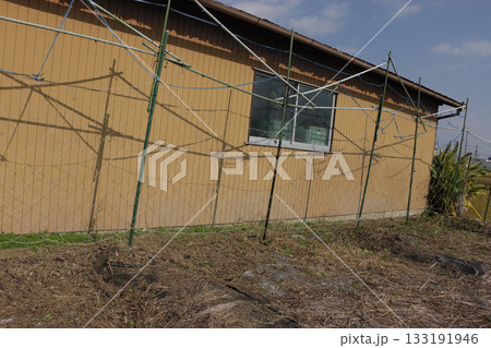 夕日の空 夕焼け 建物 マンション 黄昏 西日 雲 空 オレンジ色