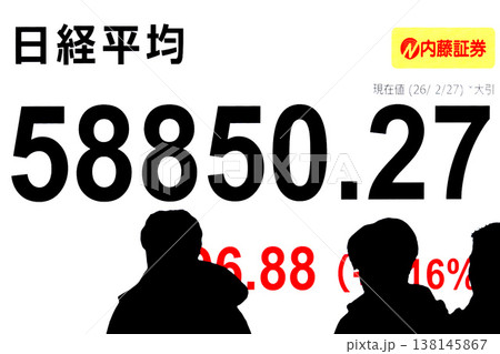 日本の東京都市景観最高値更新5万8753円39銭株価/終値。一時初の5万9000円台乗せ=2月26日