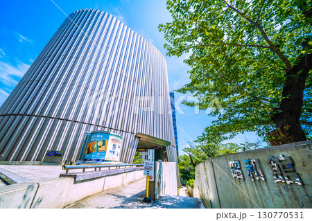 日本の東京都市景観 九段下駅(出入口2)や昭和館などを望む=8月15日