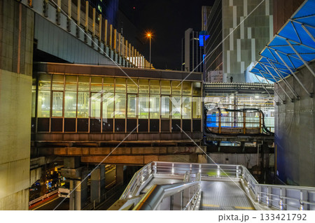 終電後のJR東海道線、京浜東北線、山手線の新橋駅、日比谷口出入口